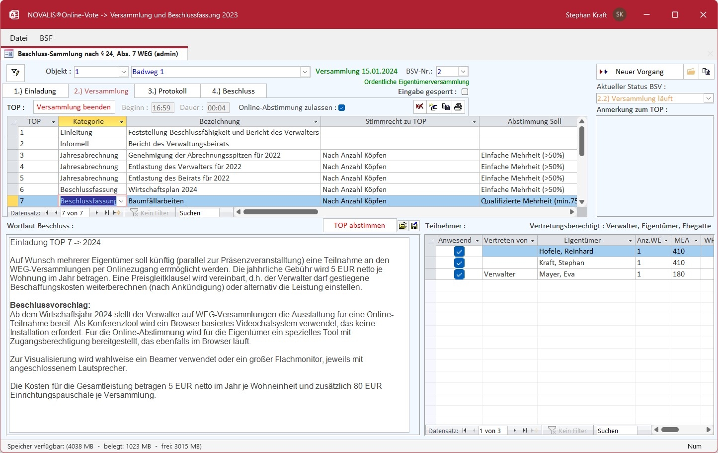 Einen ausgewiesenen Offline-Modus mit automatisierter Datensynchronisation gibt es nur für die WEG-Versammlungslösung.